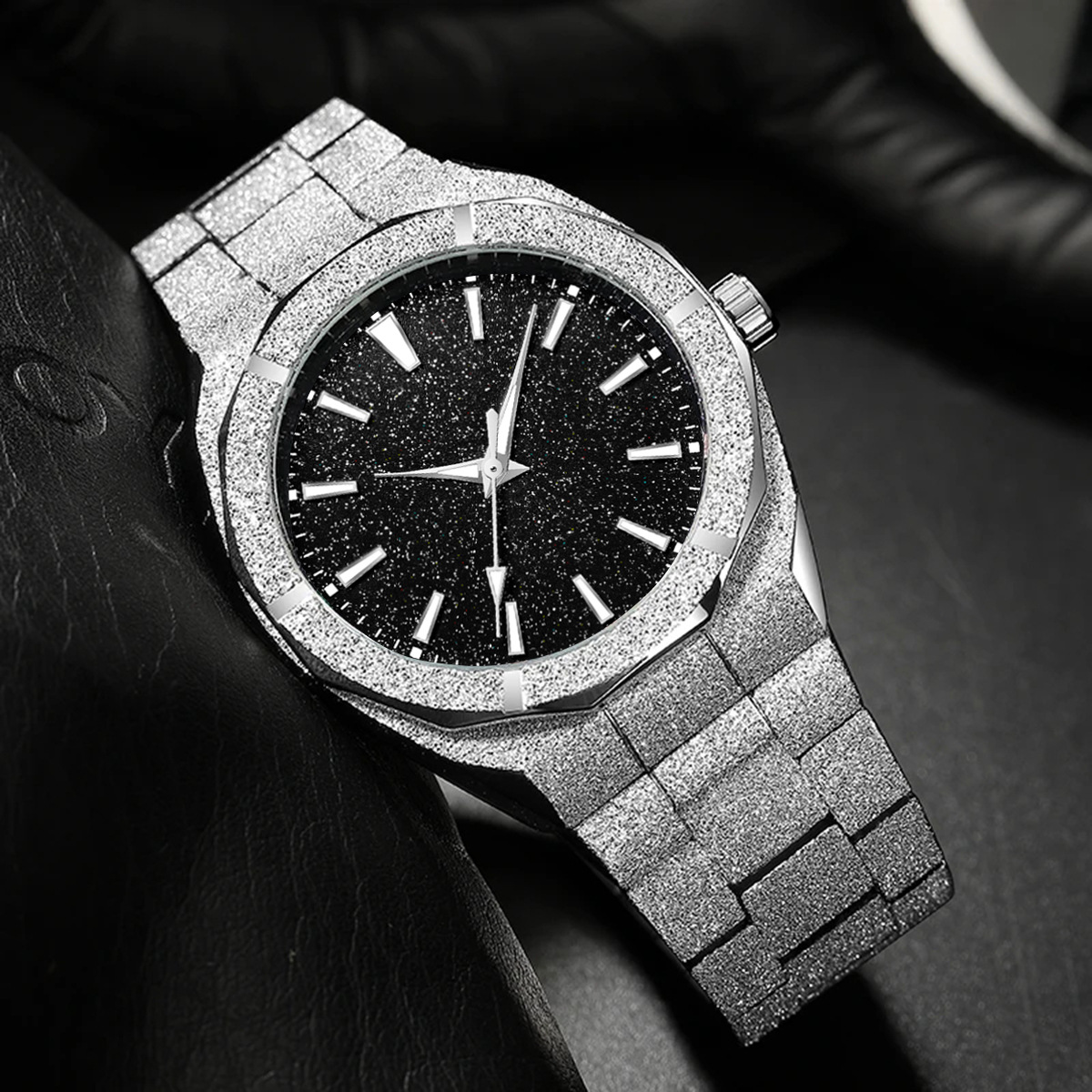 Men's Fashion Business Luxury Starry Night Luminous Waterproof Steel Strap Quartz Wristwatch
